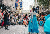 ファンタジーの世界を最大限演出できるよう、建物の活用や店舗の方々のご協力の上、実現しています。元町ショッピングストリートの皆様に心から感謝。(下記、キャストさんのお名前は敬称略)